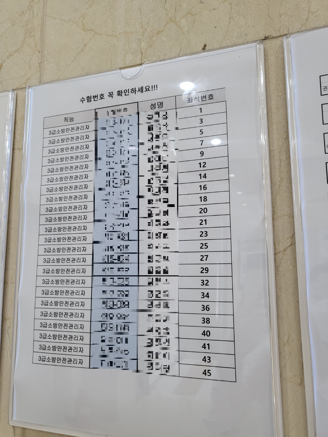 이 수험번호는 시험실 입실 전 확인하시거나 뽑아가신 응시표에 적혀 있으니 응시표에 수험번호만 빨리 보시고 다시 집어넣으시면 됩니다.