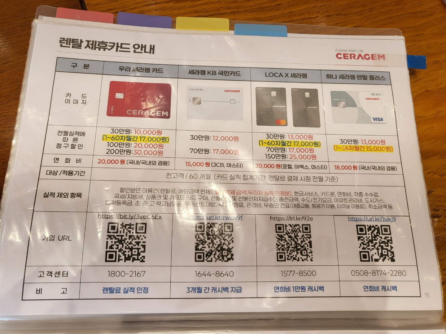 그래서 우리 카드를 렌탈요금할인 카드로, 롯데카드를 할부금액 카드로 정하게 되었습니다.