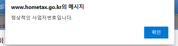 이렇게 입력한 정보들이 맞다면 '정상적인 사업자번호입니다' 안내가 나가고 계속 진행할 수 있습니다.