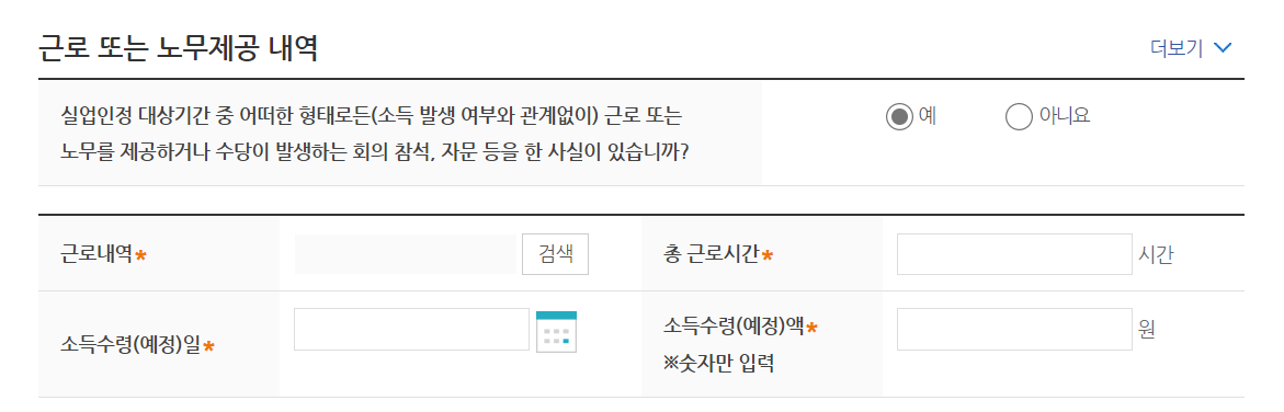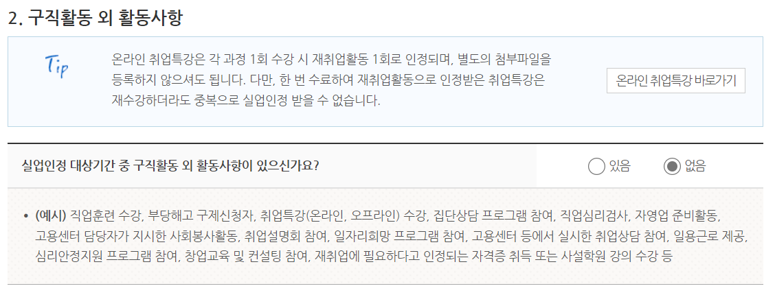실업인정 기간 중 노무제공이나 취업 내역 등을 물어보는 란이 있는데 없다면 '아니요'