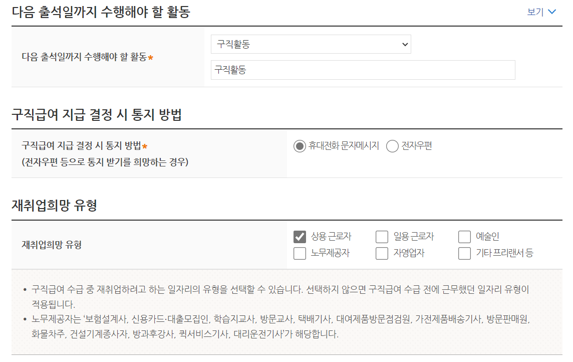 실업인정일 전날 '실업인정 당일 00시~17시까지 구직활동내역을 인터넷으로 전송'하라는 문자가 옵니다.