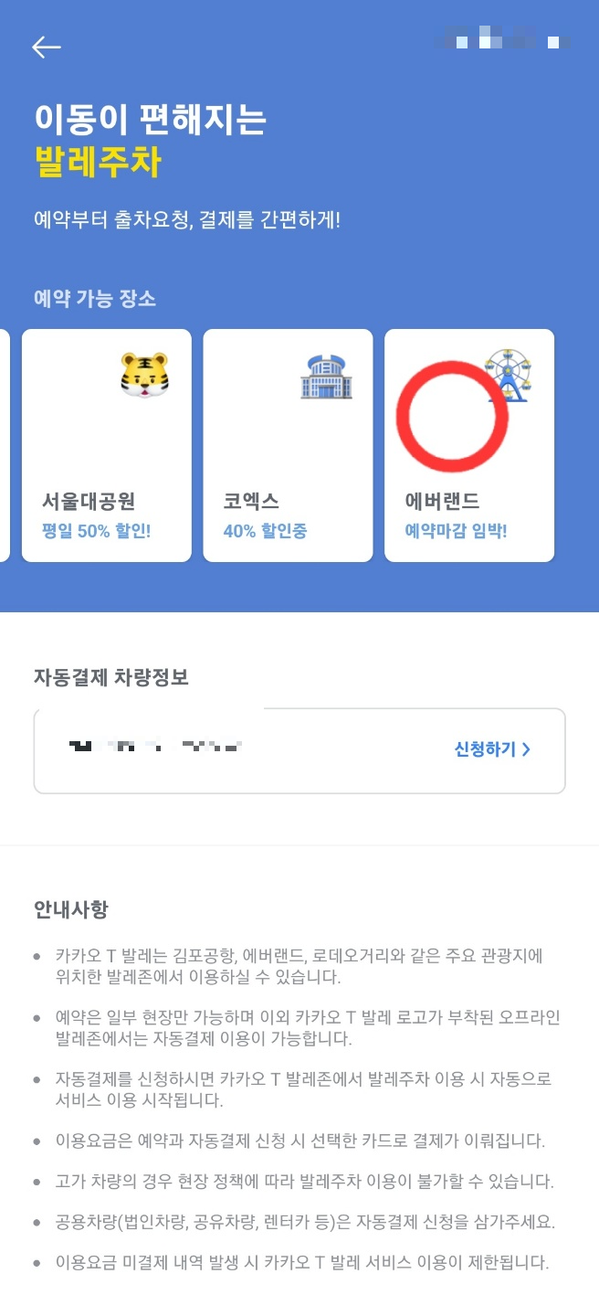 에버랜드 앱을 통한 발레파킹 예약방법이니 아래를 참고 하시길 바랍니다.