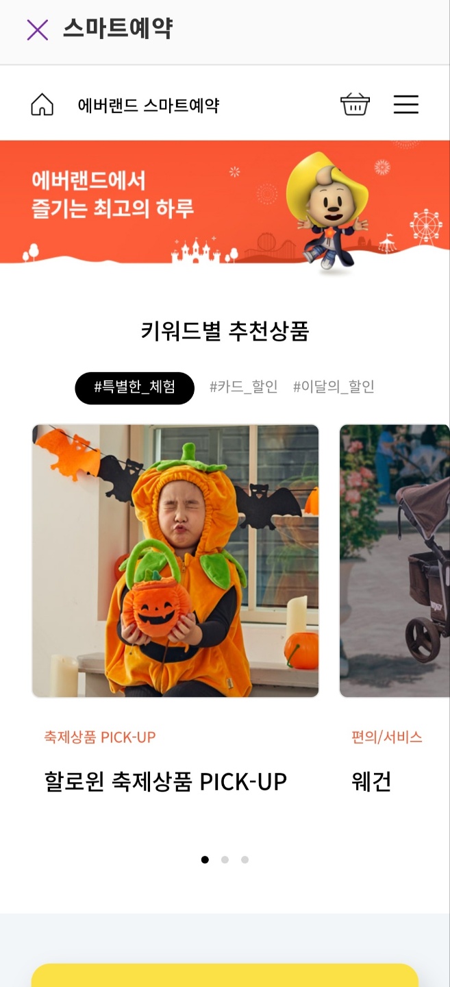 위처럼 예약가능장소가 뜨는데 오른쪽으로 밀면 오른쪽 제일 끝에 에버랜드라고 있습니다.