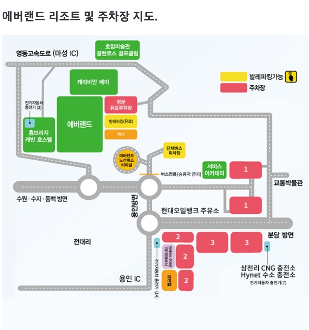 에버랜드 주차는 3가지로 나뉠 수 있습니다.