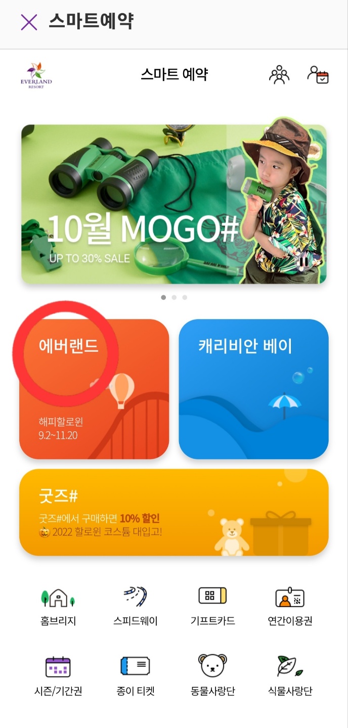 그럼 스마트 예약을 눌러 에버랜드로 들어갑니다.