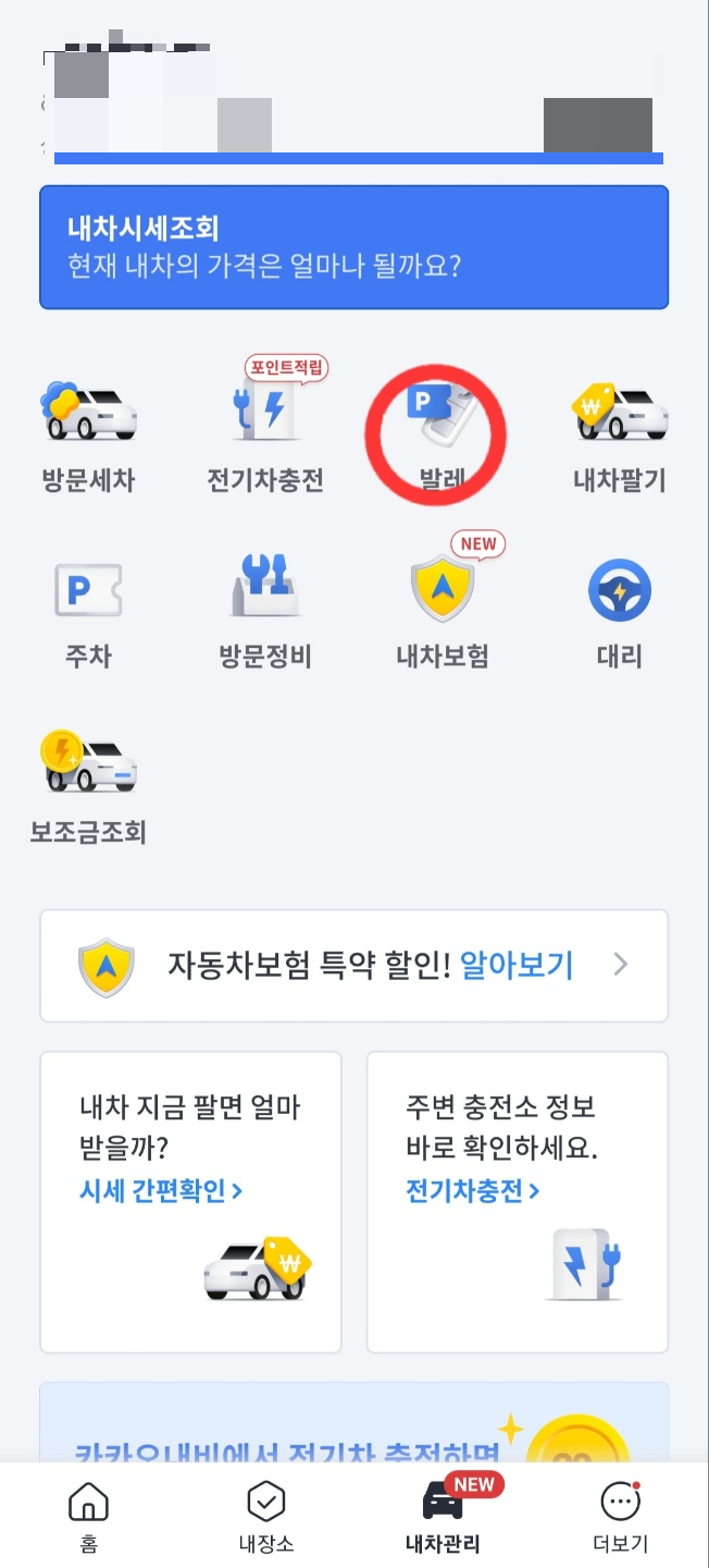 '카카오내비' 앱으로 들어가서 아래 '내차관리'를 누르고 '발레'로 들어갑니다.