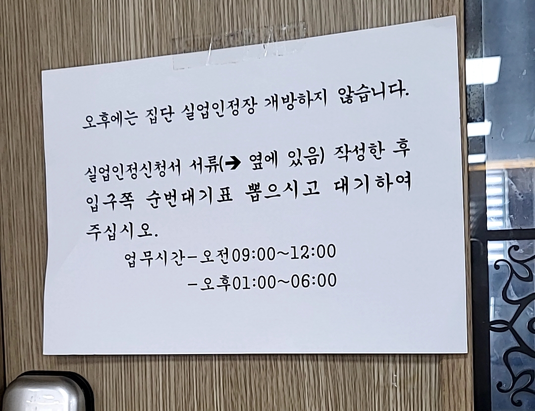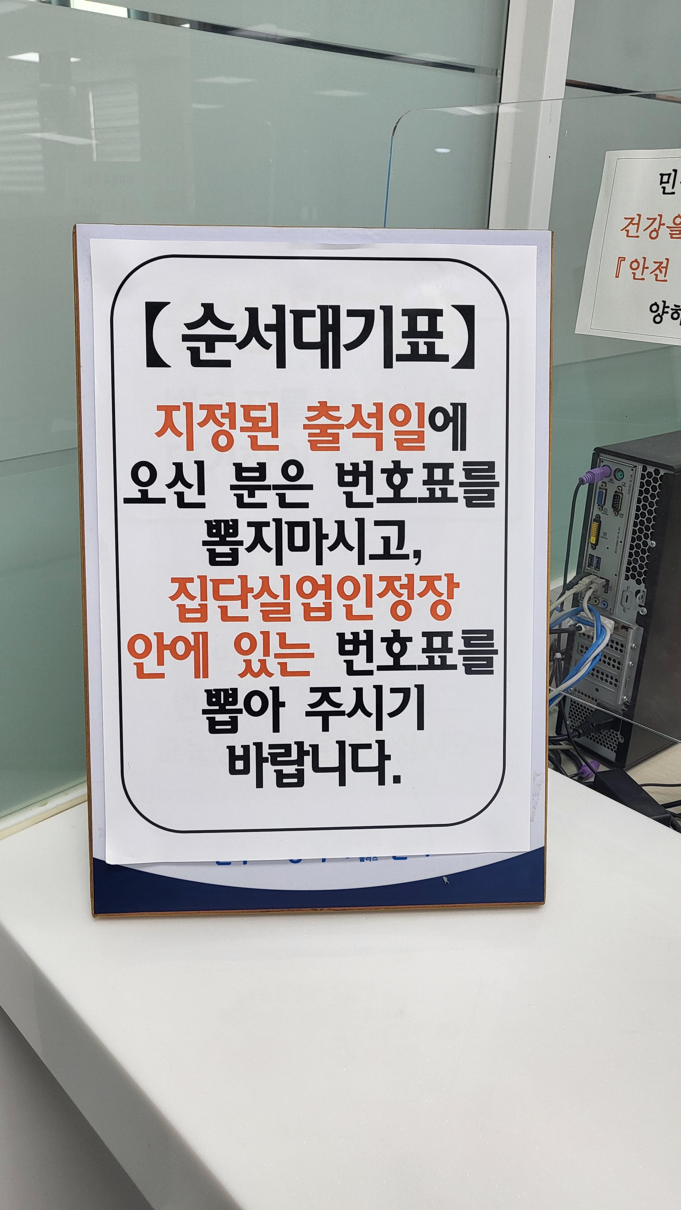 집단 실업인정장의 번호표를 뽑고 집단 실업인 정장에서 대기하는 것 같습니다.하지만 방문한 날는 집단 실업인정장을 개방하지 않아