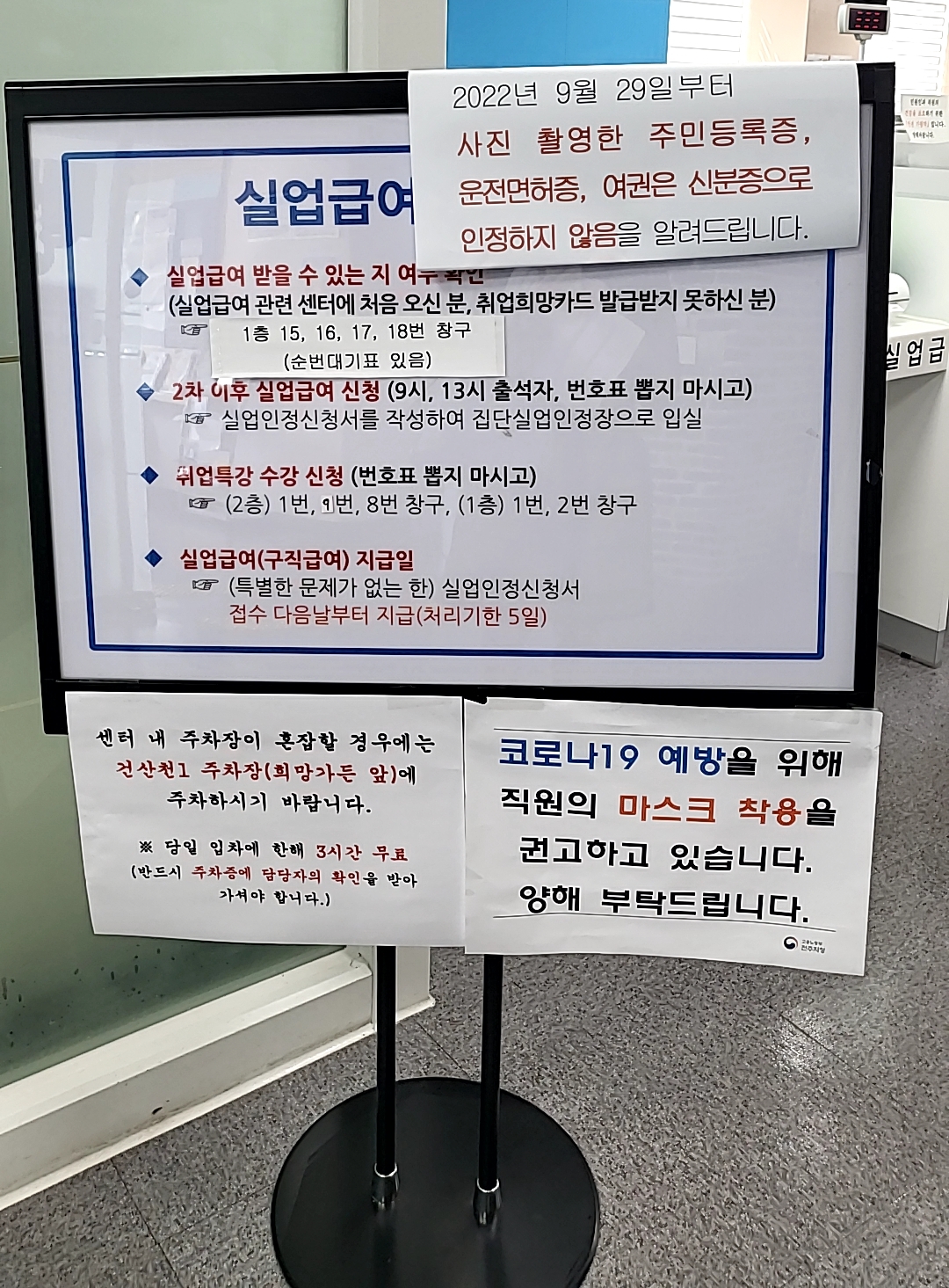 특히 사진 촬영한 신분증은 인정하지 않는다고 하니 꼭 지참하셔서 오셔야 합니다.4차 실업인정은 밖에 있는 번호표를 뽑지 않고