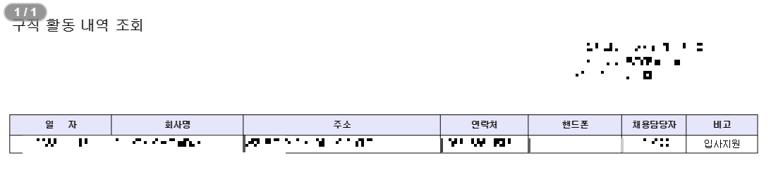 나의 구직활동내역에 떠 있는 회사를 확인하고 전체 저장/인쇄를 클릭하면