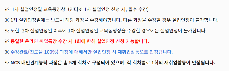 그러니 1차 실업인정 교육을 제외한 다른 동영상을 수강하시면 됩니다.