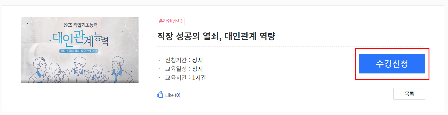 NCS 대인관계능력 과정은 총 5개 회차로 구성되어 있는데 각 회차별로 1회의 재취업활동으로 인정됩니다.