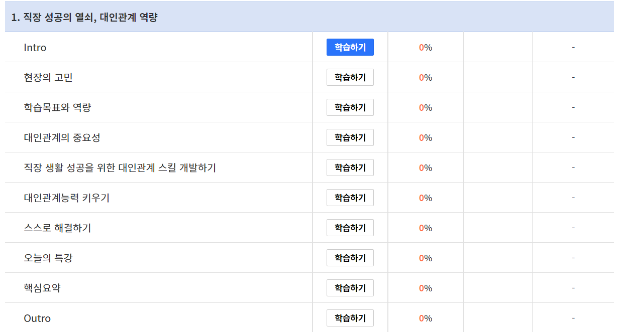 모두 좋은 내용의 동영상이라 고민은 되었지만 '직장 성공의 열쇠, 대인관계 역량'을 선택 했습니다.