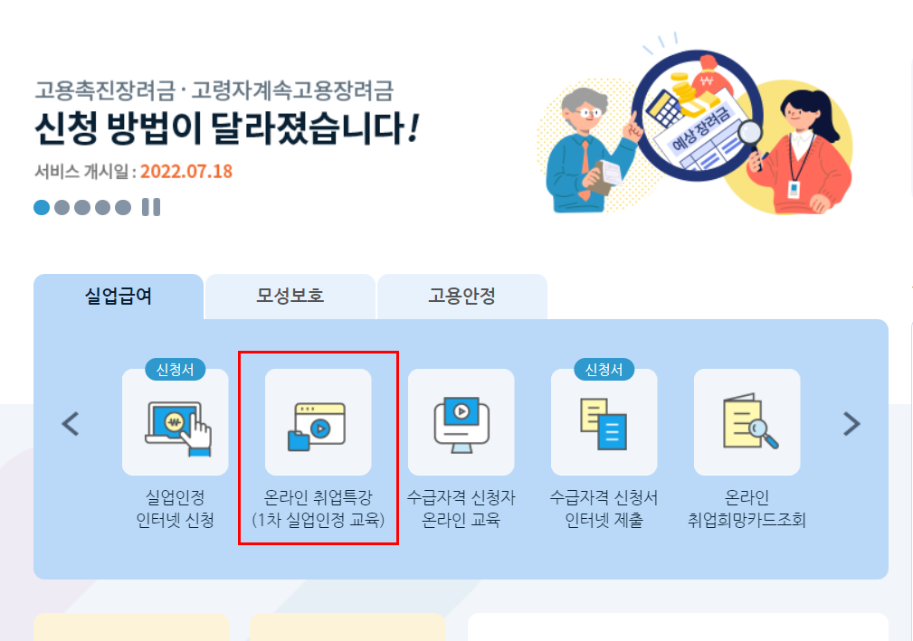 예)  2차~4차 실업인정 대상 기간 내 온라인 취업특강 1개를 수강한다면 다른 재취업활동 없이도 실업인정 받을 수 있음.