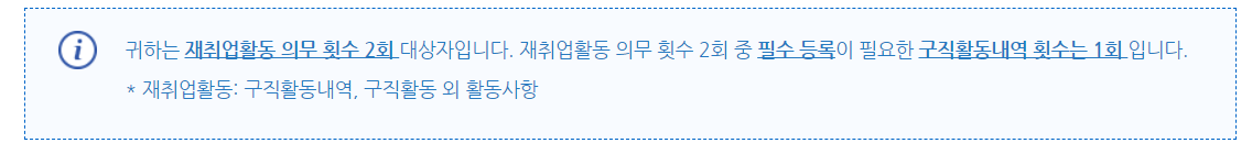 재취업활동이란 구직활동, 구직활동 외 활동사항을 포함하는데 5차부터는 재취업활동 의무가 2건 이상입니다.