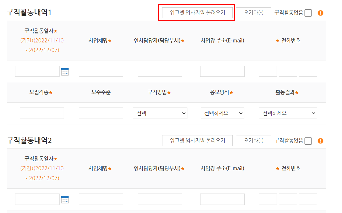 5차부터는 구직활동내역을 입력하는 란이 2개가 뜹니다.