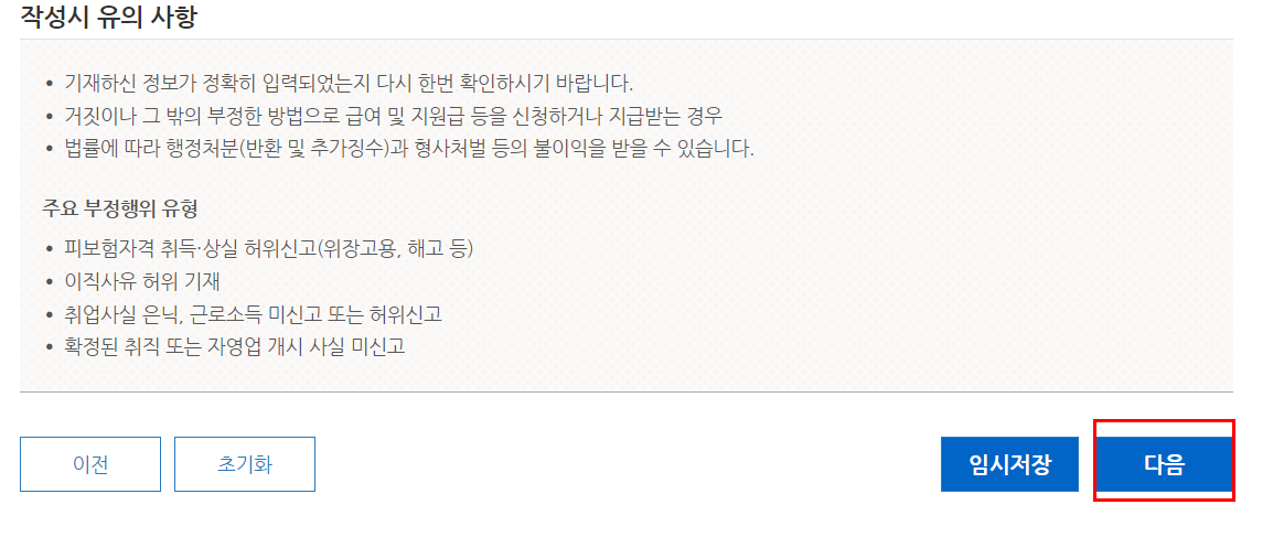 이 부분을 허위로 한다면 부정수급에 해당할 수 있기에 정확히 해야 합니다.