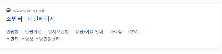 우선 검색창에 '소민터'를 검색하여 소방청 소방민원센터로 접속합니다.