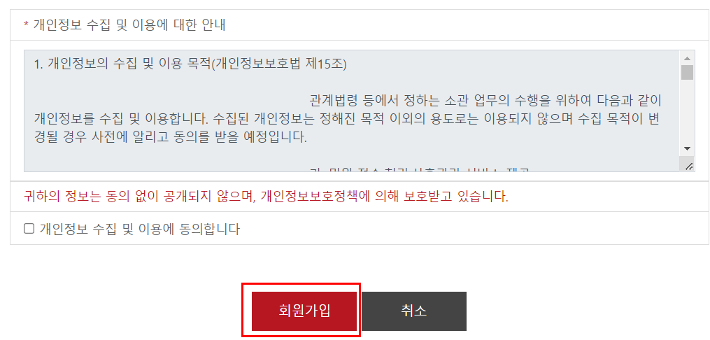 소민터에서 민원신청을 하기 위해서 회원가입을 진행 합니다.