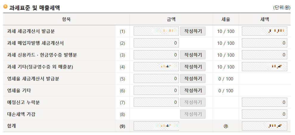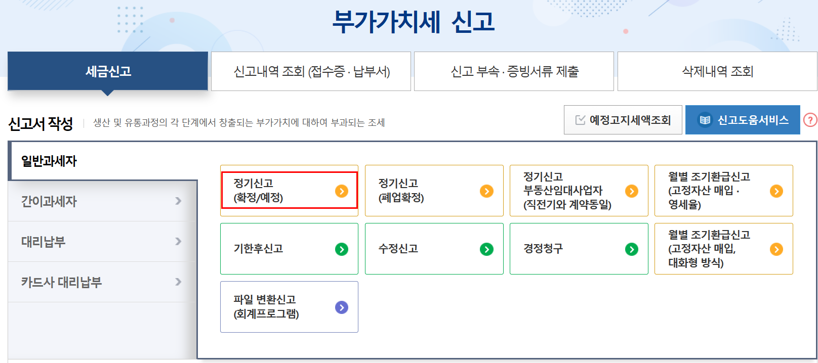 일반과세자 과세표준 신고서 작성화면으로 이동합니다.