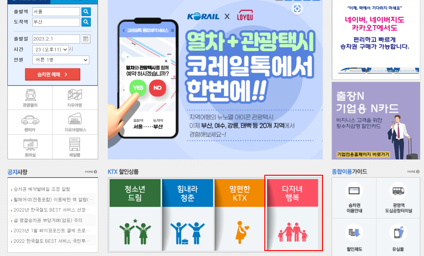 이제 다자녀로 할인받으면서 기차를 이용할 수 있습니다.