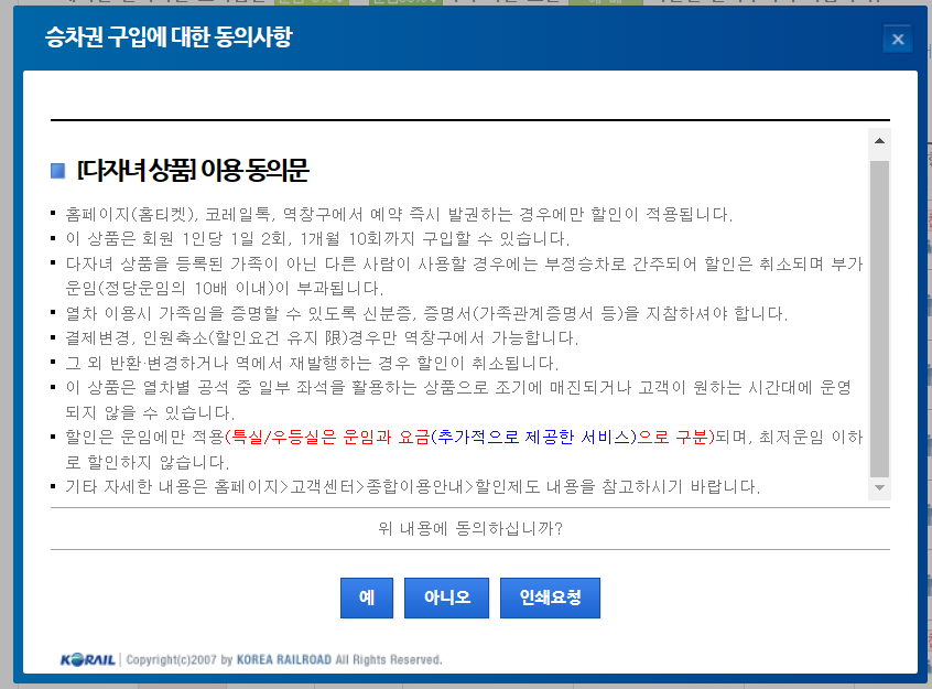 생각해 보면 모든 시간대의 승차권을 일반 승차권과 똑같이 발권하면서 할인을 받는 거 같지만 다자녀할인을 통한 예매는 시간대가 좀 달랐습니다.