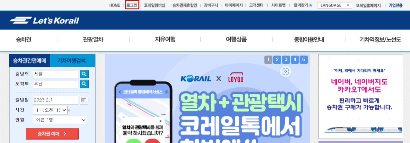 기차를 이용하려면 기차역에 가서 발권을 할 수도 있지만 코레일 홈페이지(레츠코레일)이나 코레일 앱을 통해서도 발권이 가능합니다.