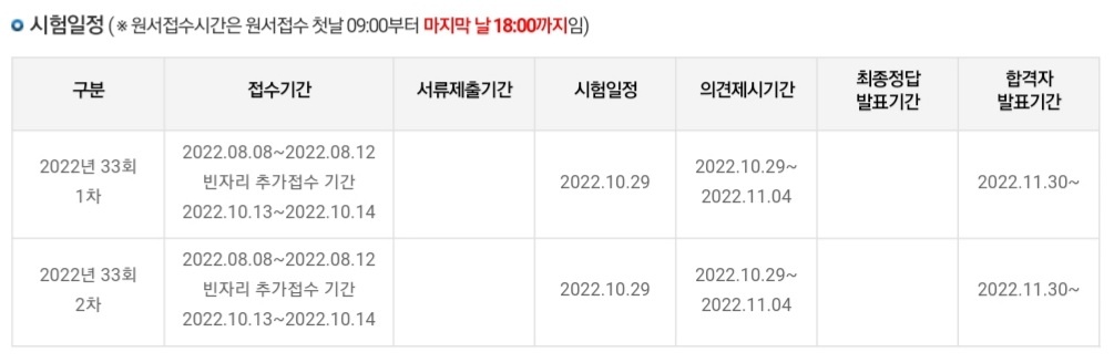 2022년 33회 차 공인중개사 시험날짜는 10월 29일 입니다.