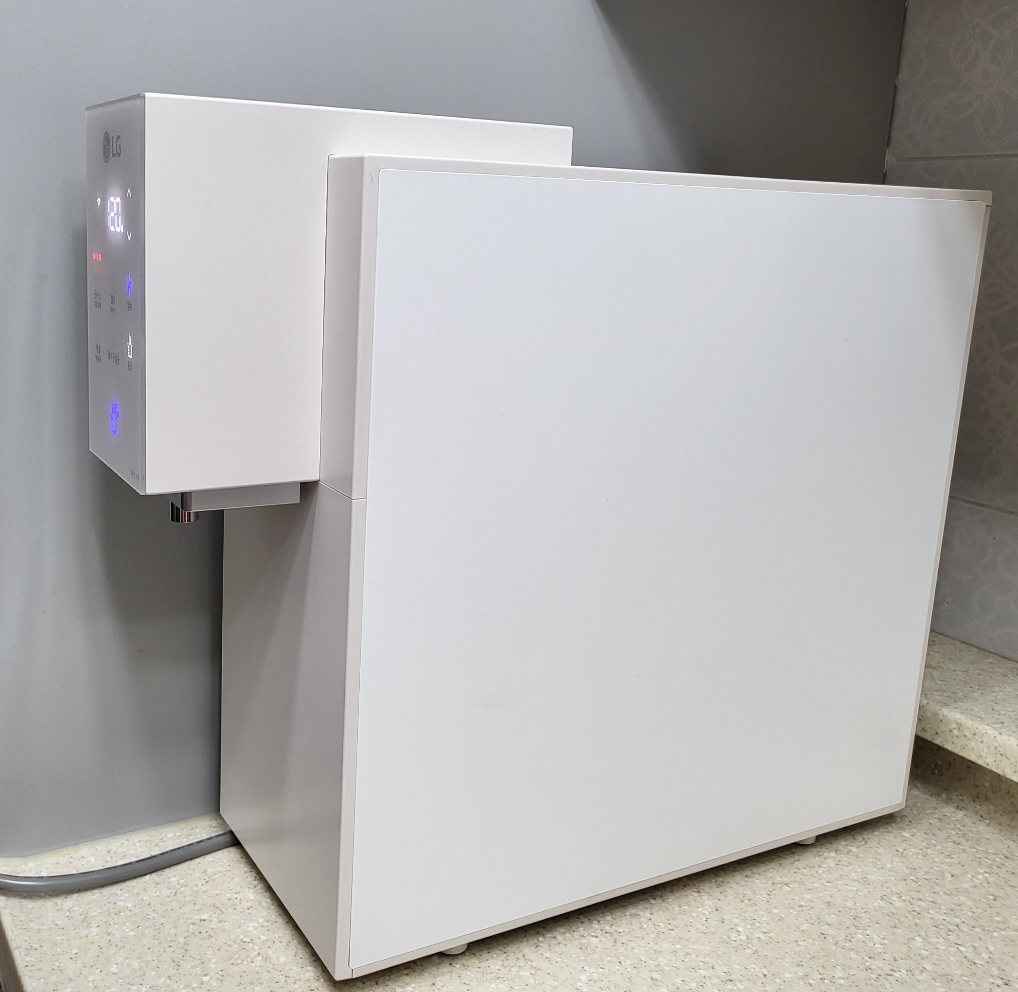 밑에 물받이가 있다면 넘친 물을 받아 주어 깔끔하게 관리할 수 있지만, 엘지(LG) 퓨리케어 오브제 컬렉션WD507A의 경우 아래 물받이가 없어 사용하시는데 주의하여야 합니다.