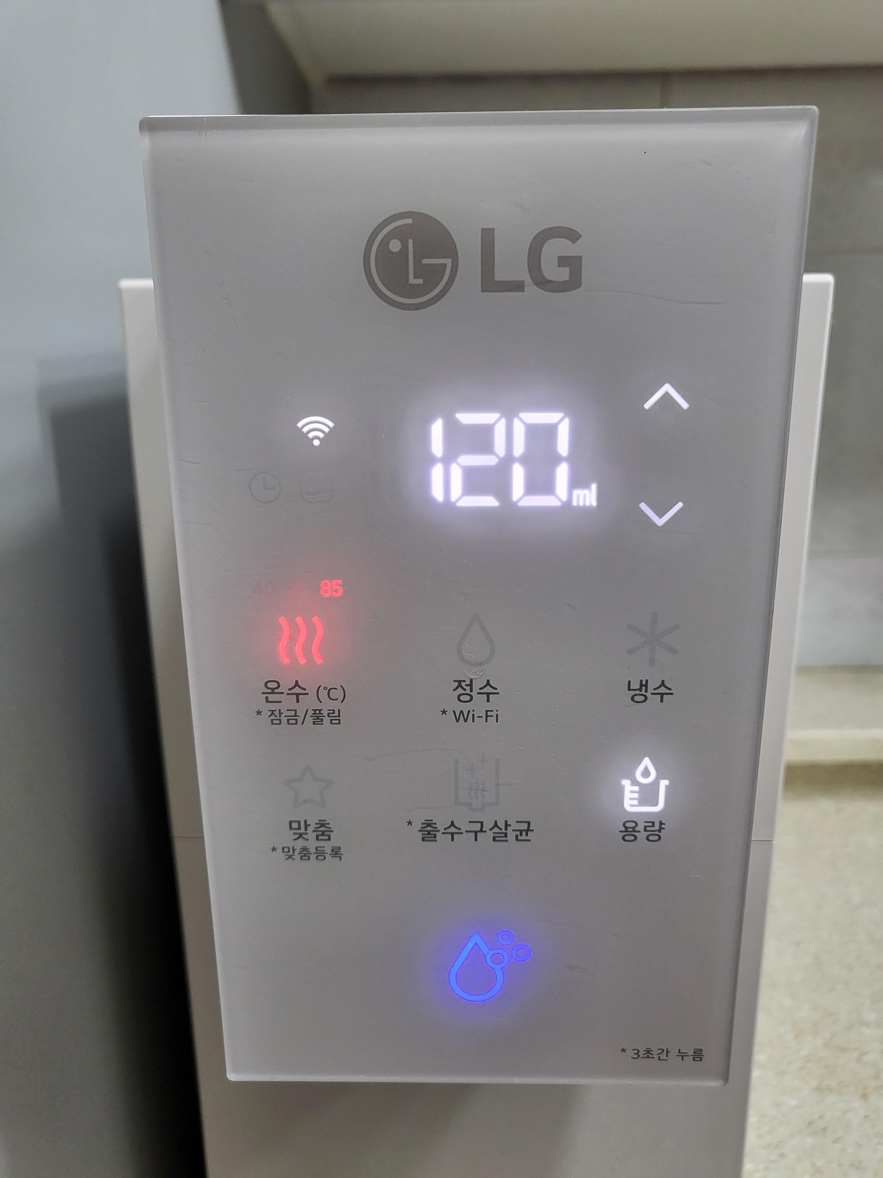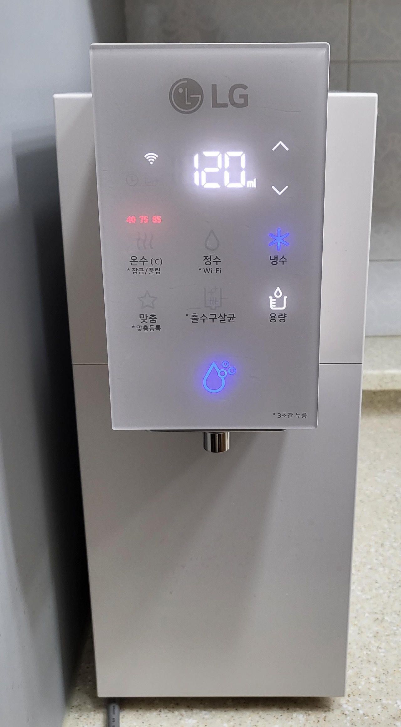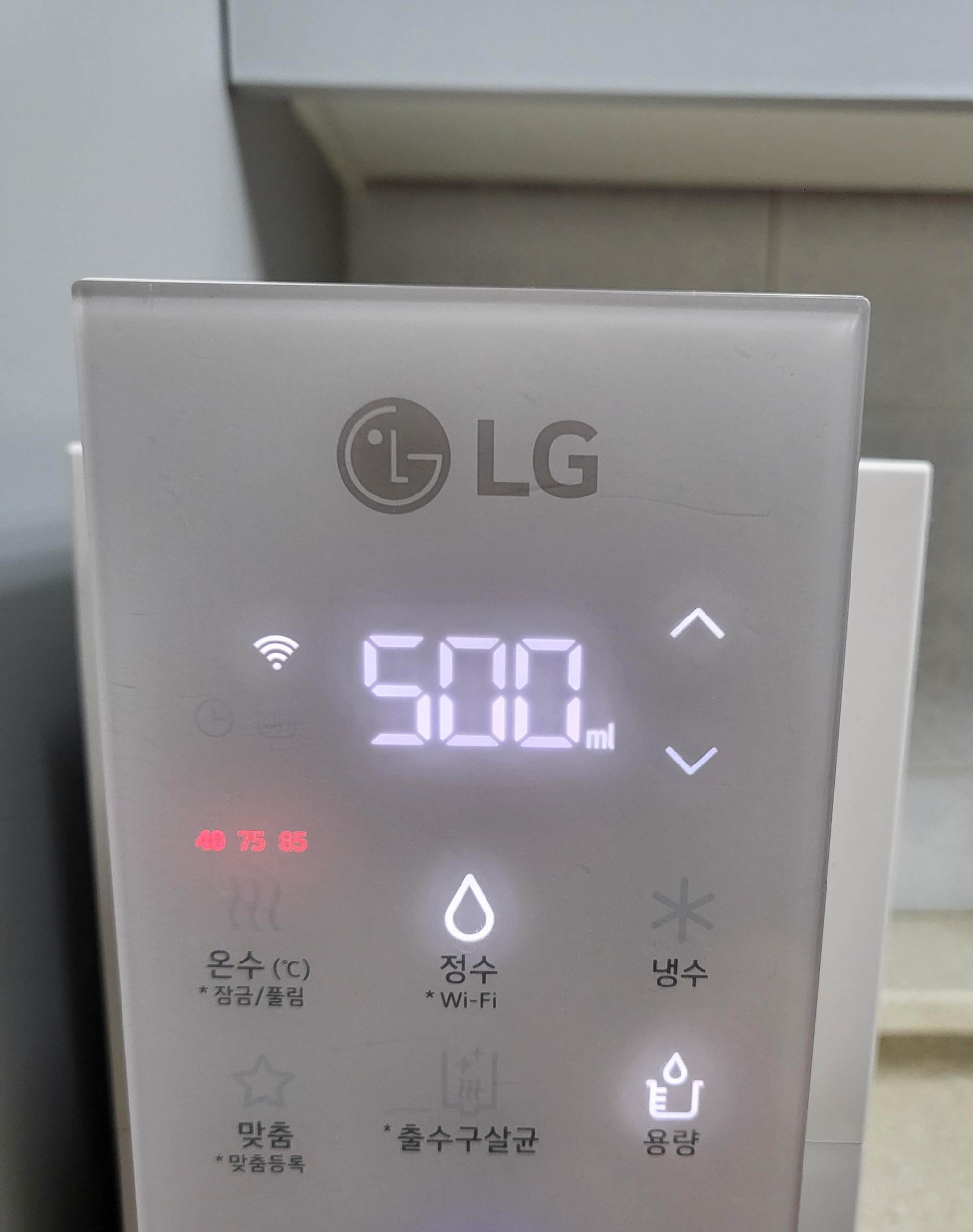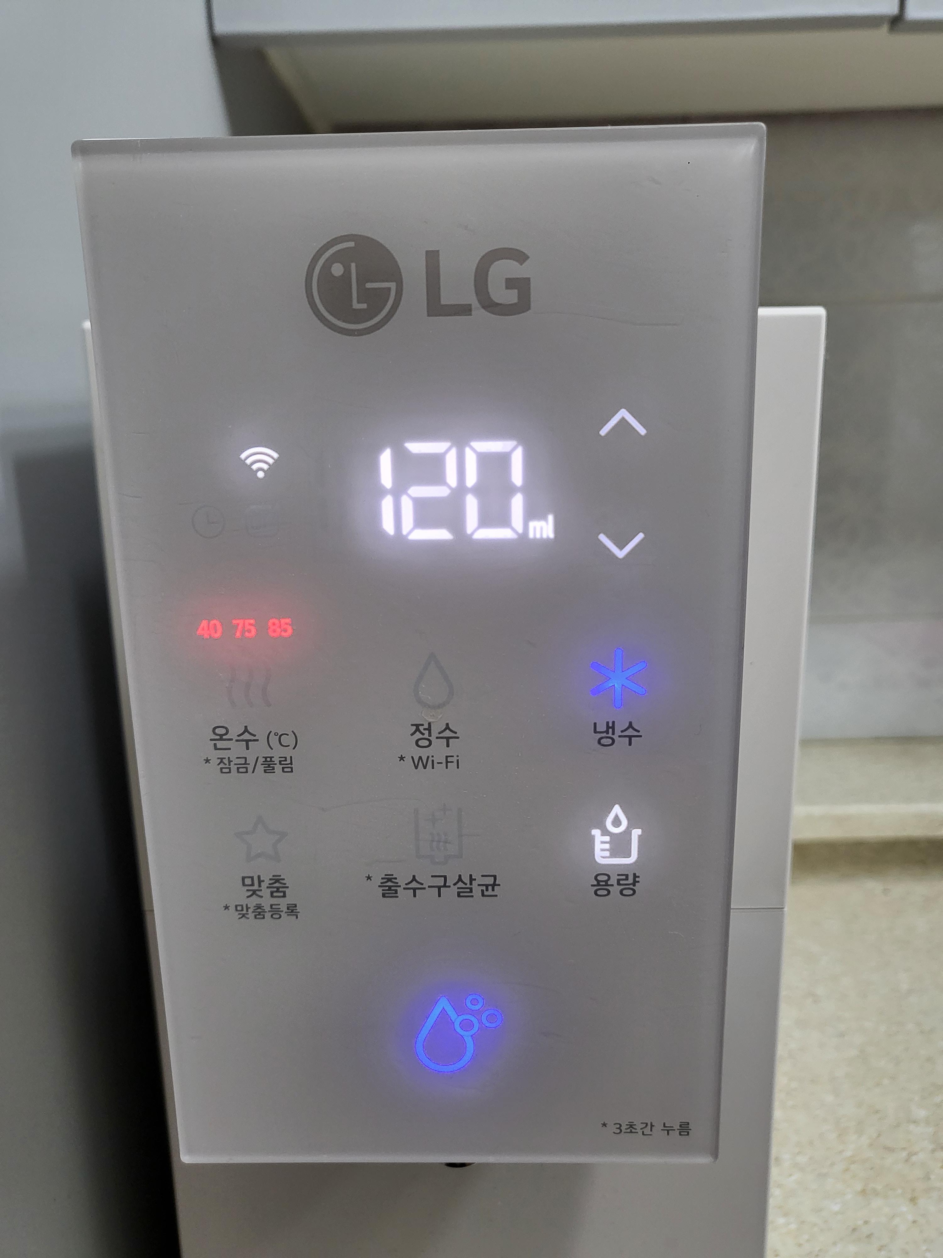 그럼 정수기 앞에 있을 필요 없이 정수기 밑에 컵만 놓고 맞춤을 눌러 다른 일을 볼 수 있으니 아주 편리했습니다.