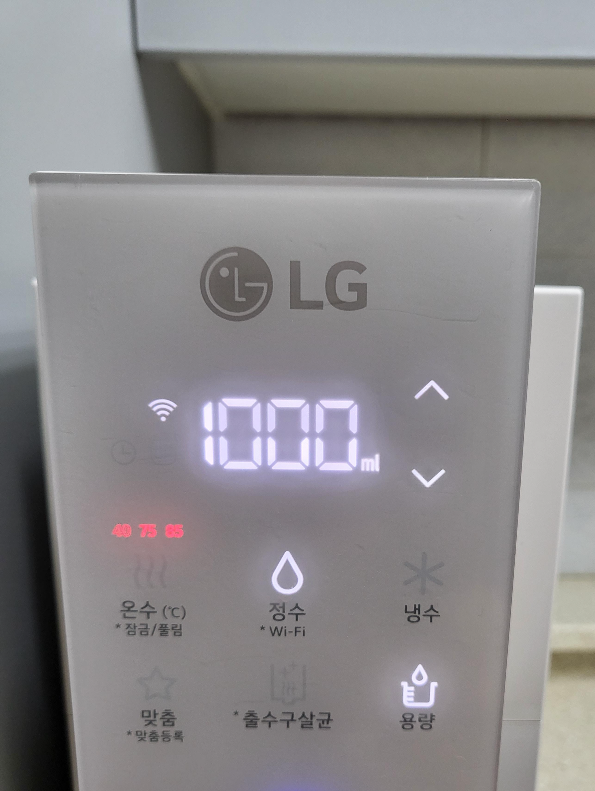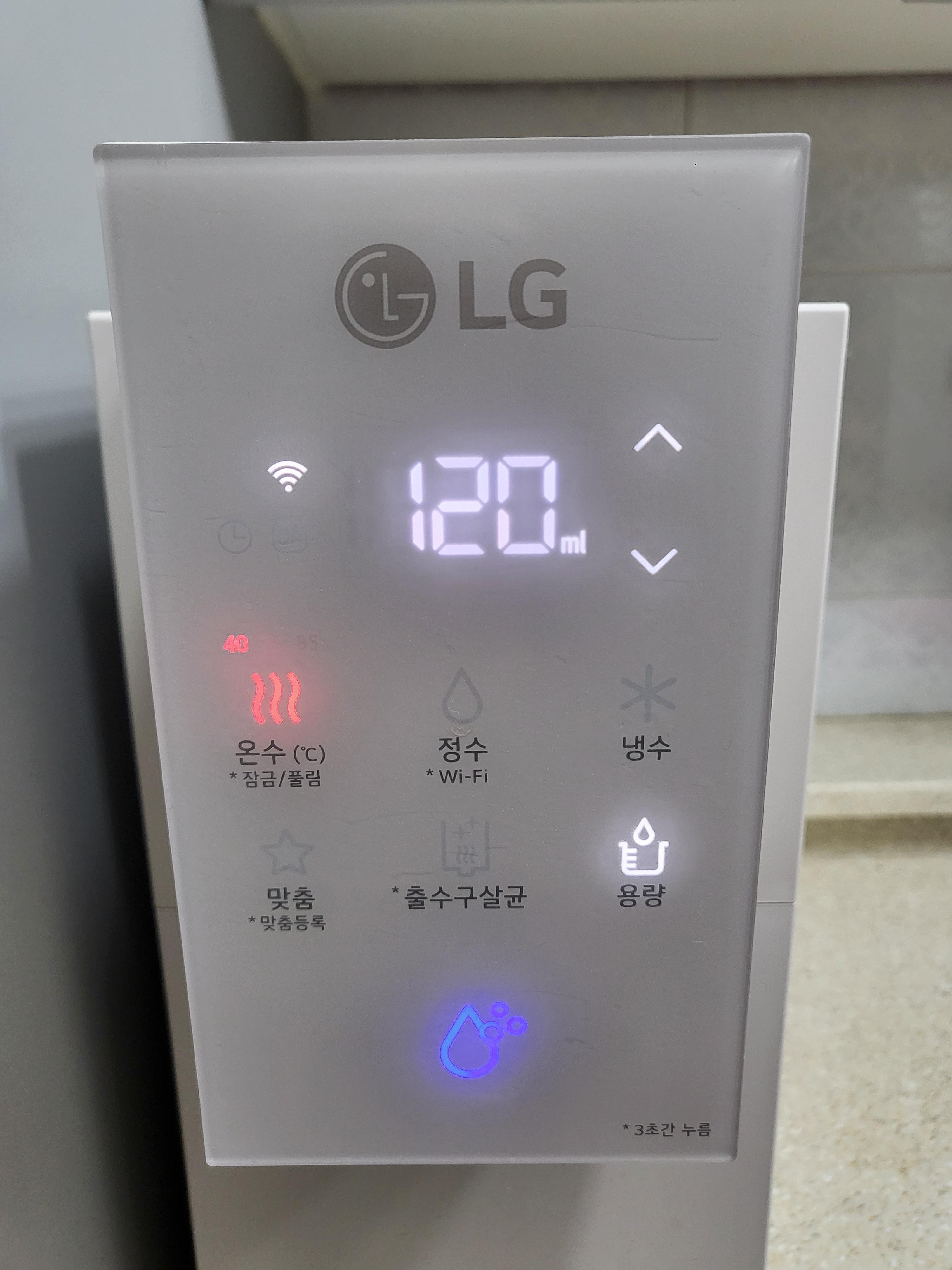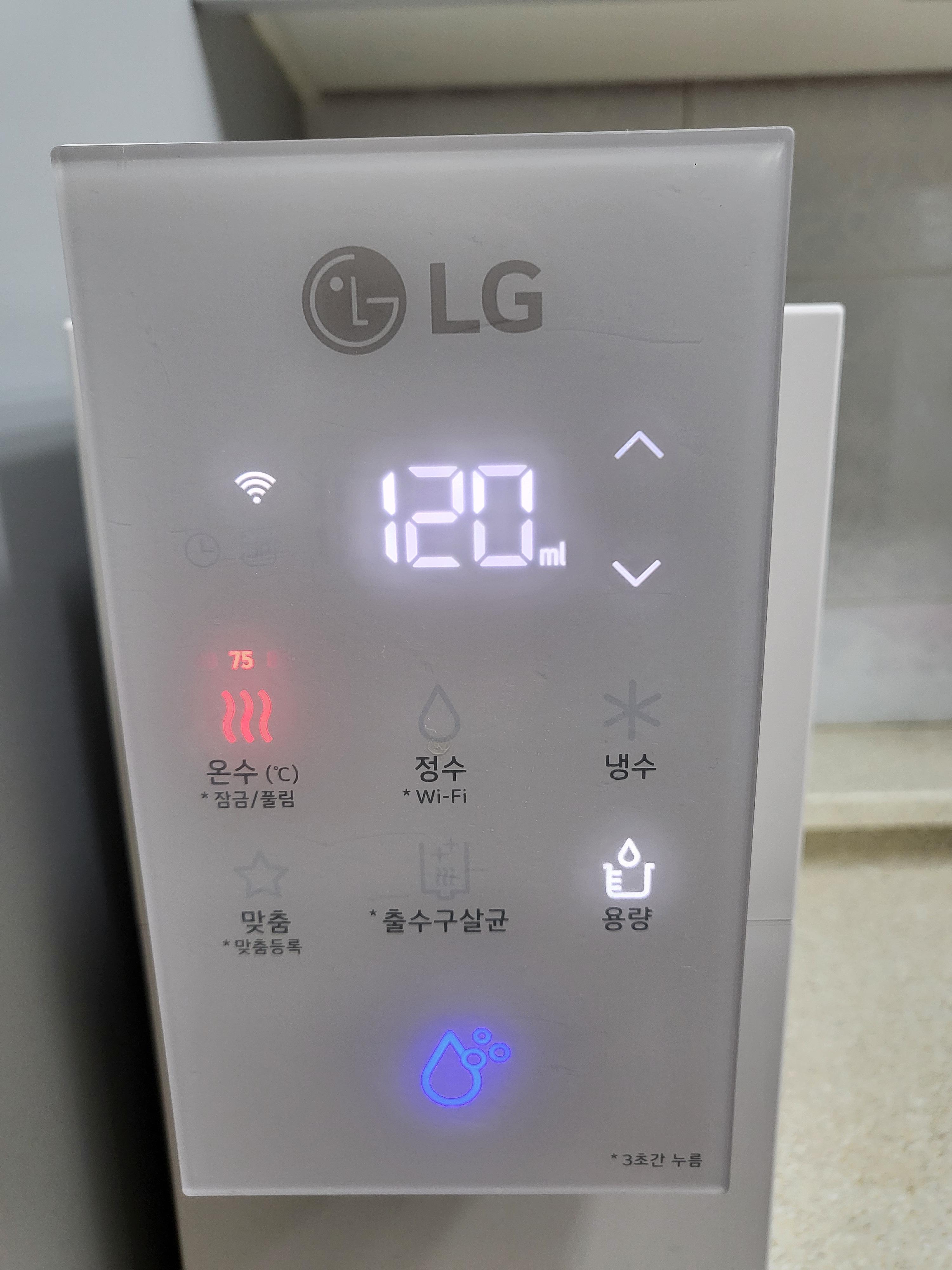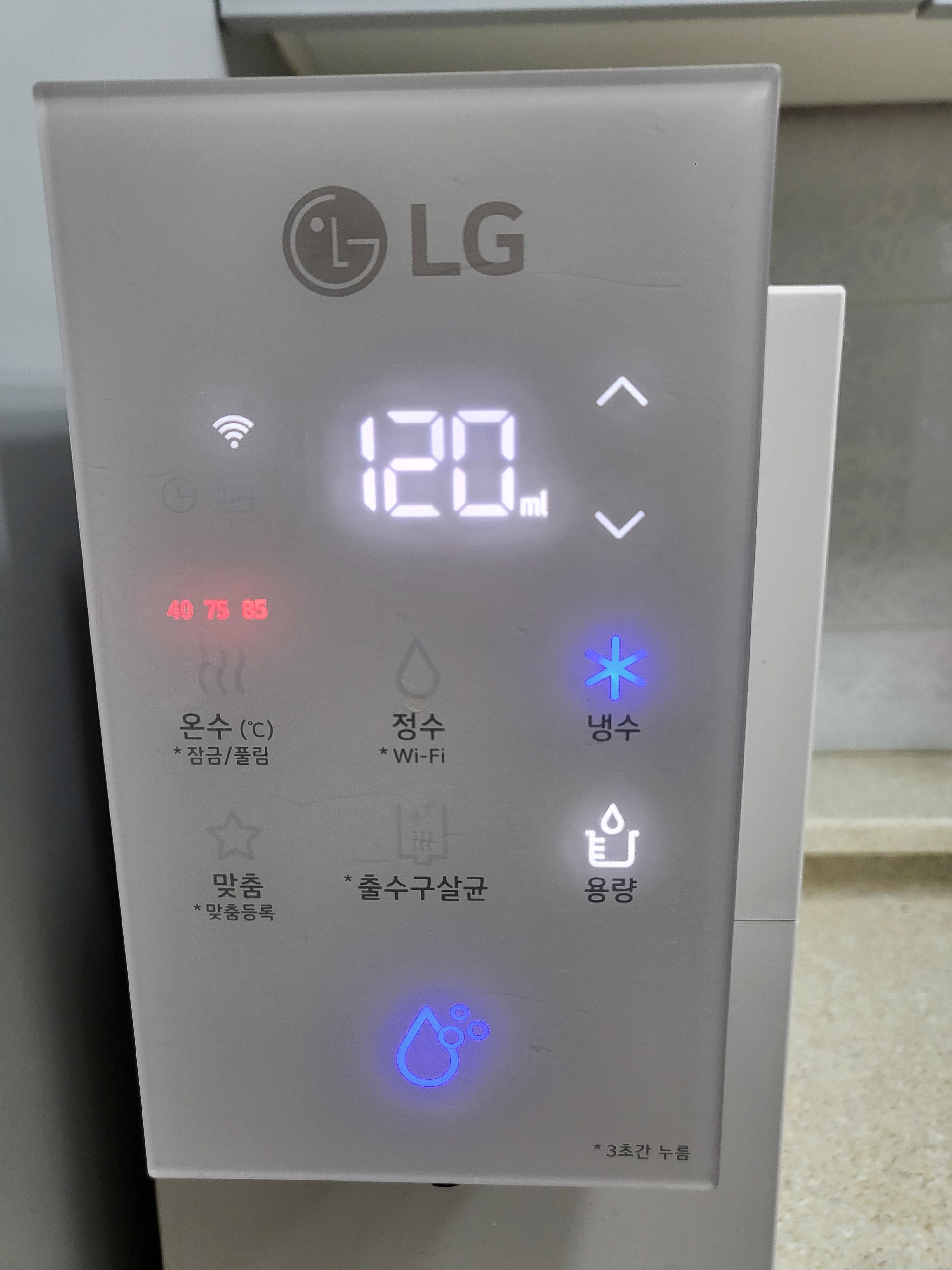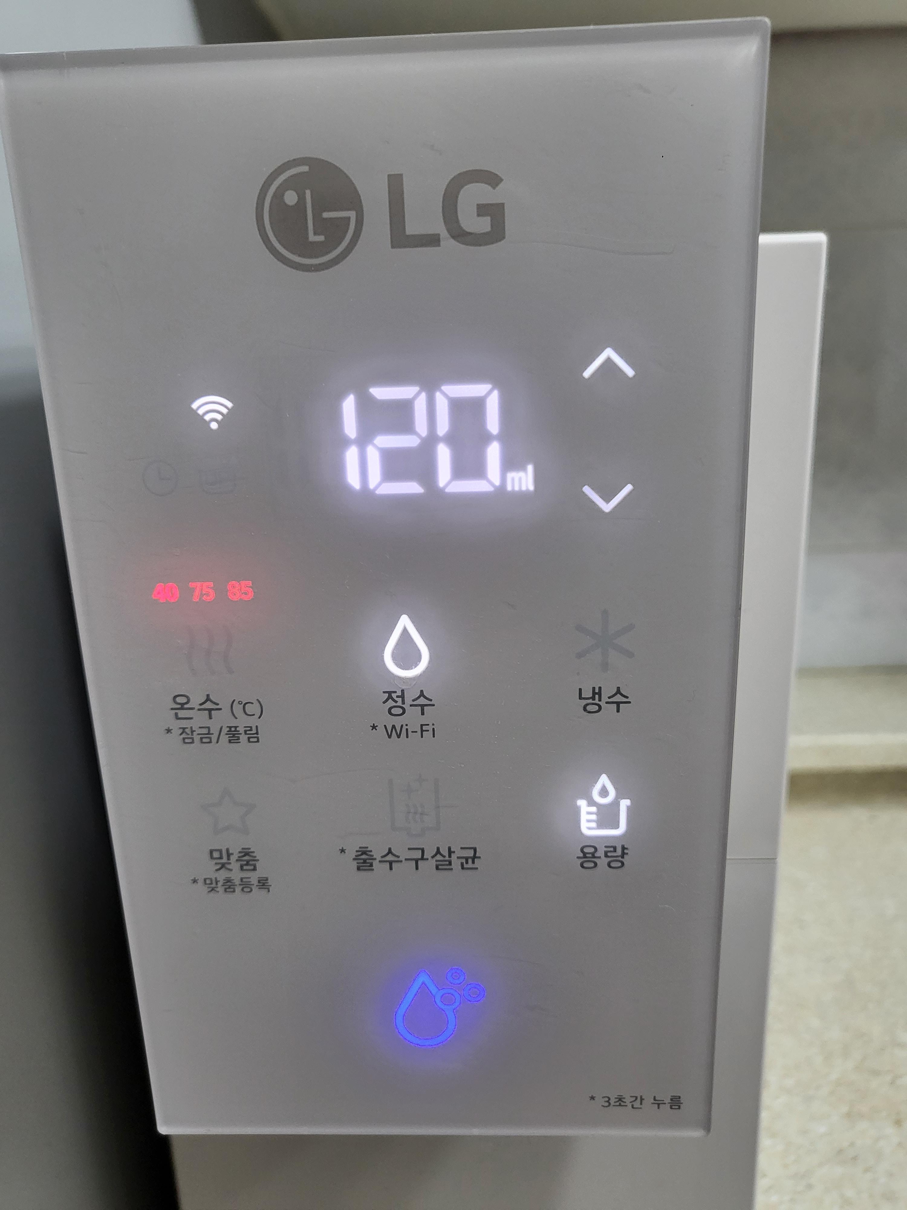 그럼 정수기 앞에 있을 필요 없이 정수기 밑에 컵만 놓고 맞춤을 눌러 다른 일을 볼 수 있으니 아주 편리했습니다.
