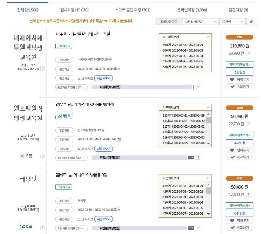 그럼 다양한 직업훈련들이 나타납니다.