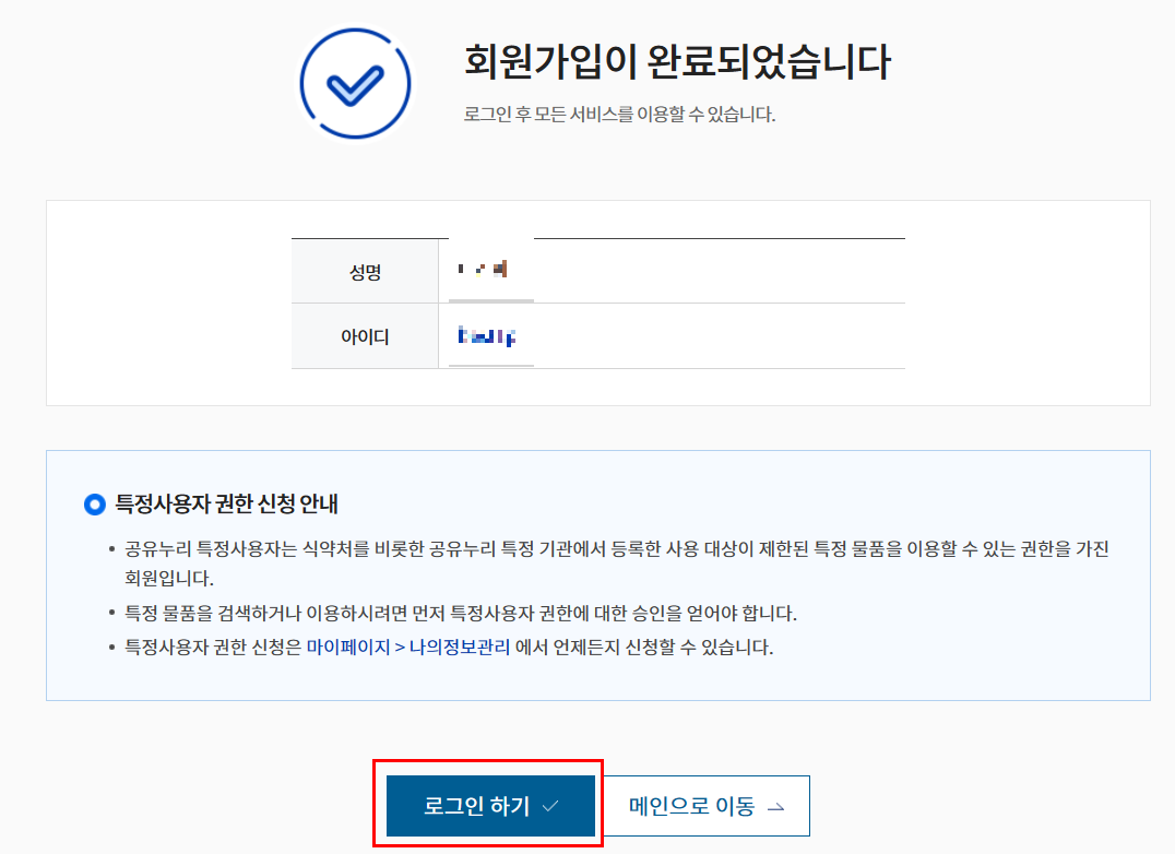 공유누리 홈페이지 우측 상단의 [회원가입]을 클릭합니다.