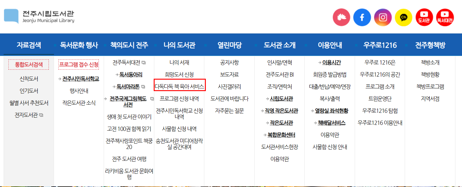 전주시뿐 아니라 여러 지자체에서도 시행하고 있는 서비스이니 주민등록상 거주지 도서관에서 도서배달 서비스가 있다면 대상을 잘 확인하여 이용하시길 바랍니다.
